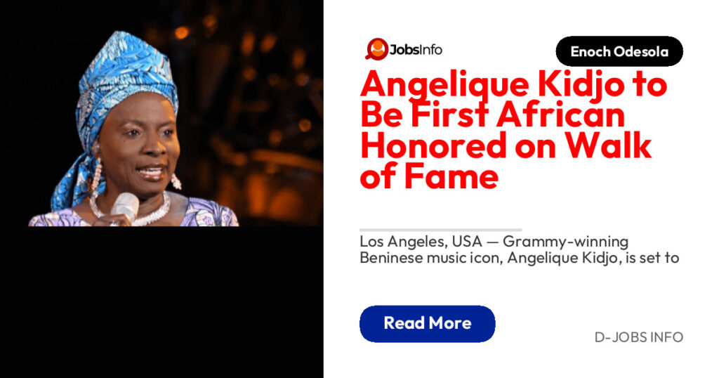 Los Angeles, USA — Grammy-winning Beninese music icon, Angelique Kidjo, is set to make history as the first African artist to receive a star on the prestigious Hollywood Walk of Fame.