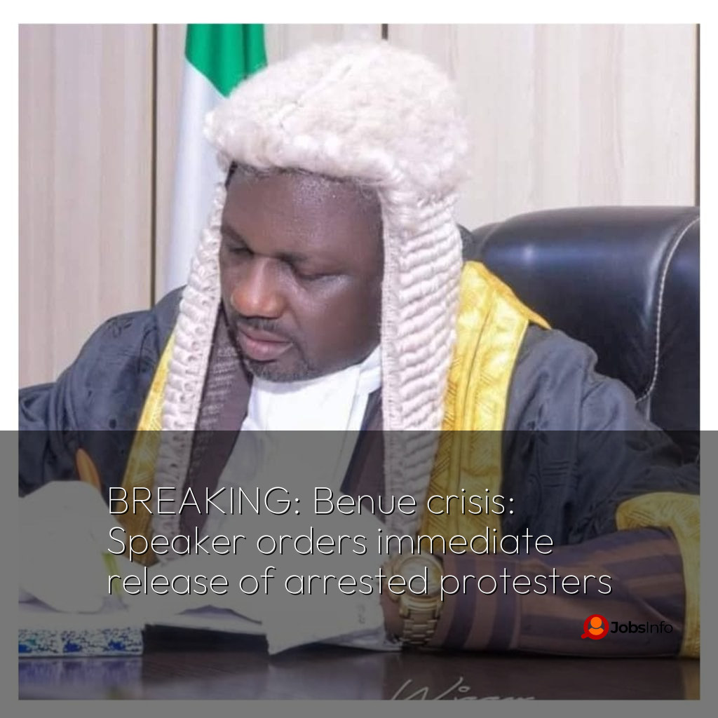 BENUE STATE – The Speaker of the Benue State House of Assembly, Aondona Dajoh, has ordered the immediate release of all youths arrested during recent protests across the state.