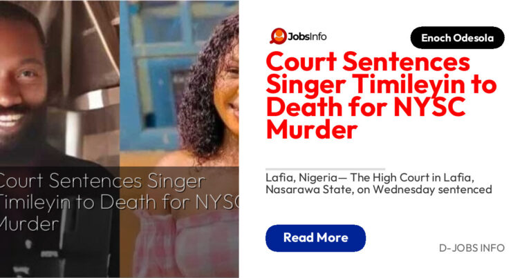 Lafia, Nigeria— The High Court in Lafia, Nasarawa State, on Wednesday sentenced gospel singer Oluwatimileyin Ajayi to death by hanging following his conviction for the brutal murder of 26-year-old Salome Adaidu, a member of the National Youth Service Corps (NYSC). After months of trial, the presiding judge, Justice Simon Aboki, found Timileyin guilty of culpable […]