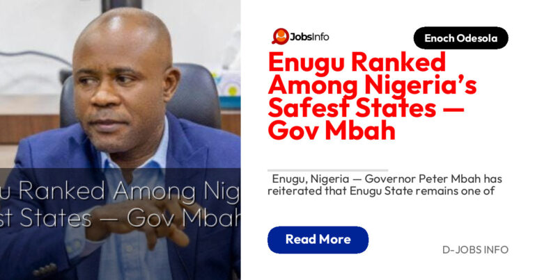 Enugu, Nigeria — Governor Peter Mbah has reiterated that Enugu State remains one of the safest states in Nigeria, despite attempts by misinformation agents to distort public perception. The governor made the statement on Wednesday while receiving AIG Abayomi Oladipo, the Inspector General of Police in charge of Zone 13, at the Lion Building, […]
