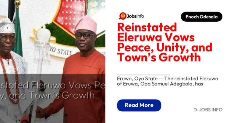Eruwa, Oyo State — The reinstated Eleruwa of Eruwa, Oba Samuel Adegbola, has pledged to champion peace, unity, and sustainable development in the Ibarapa East Local Government Area of Oyo State. He made this pledge during his official coronation ceremony held at Eleruwa Stadium in Sango, following his reinstatement and presentation of the staff of […]