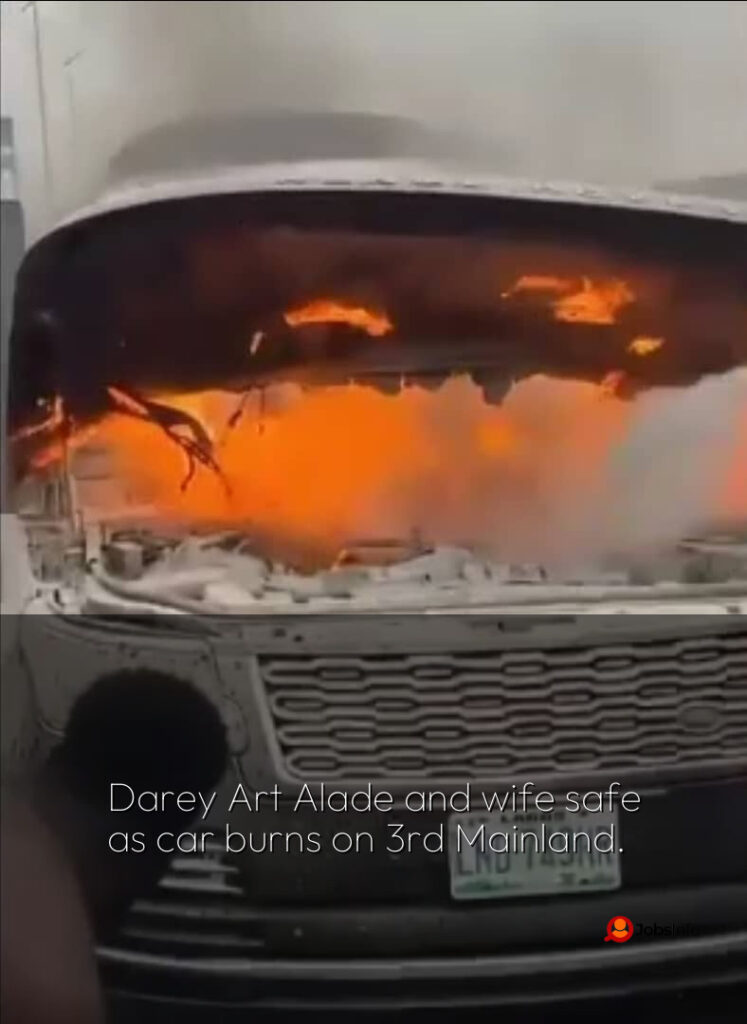Darey Art Alade and wife safe as car burns on 3rd Mainland.