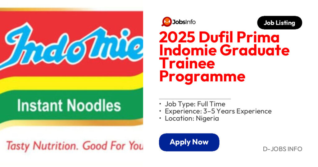 Dufil Prima Foods Plc, the powerhouse behind Indomie Instant Noodles and one of Nigeria’s top FMCG brands, is inviting talented graduates to apply for its 2025 Graduate Trainee Programme.