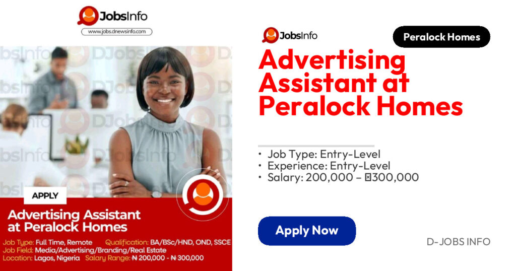 Interested and qualified candidates should send their CVs to Peralockhomesgroup@gmail.com, using “Advertising Assistant” as the subject line.