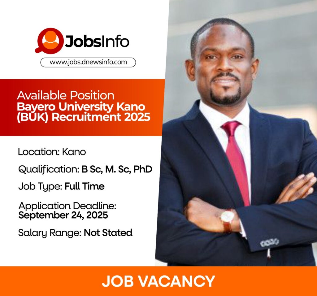 • Send applications via email to recruitment@buk.edu.ng with the appropriate job title as the subject.