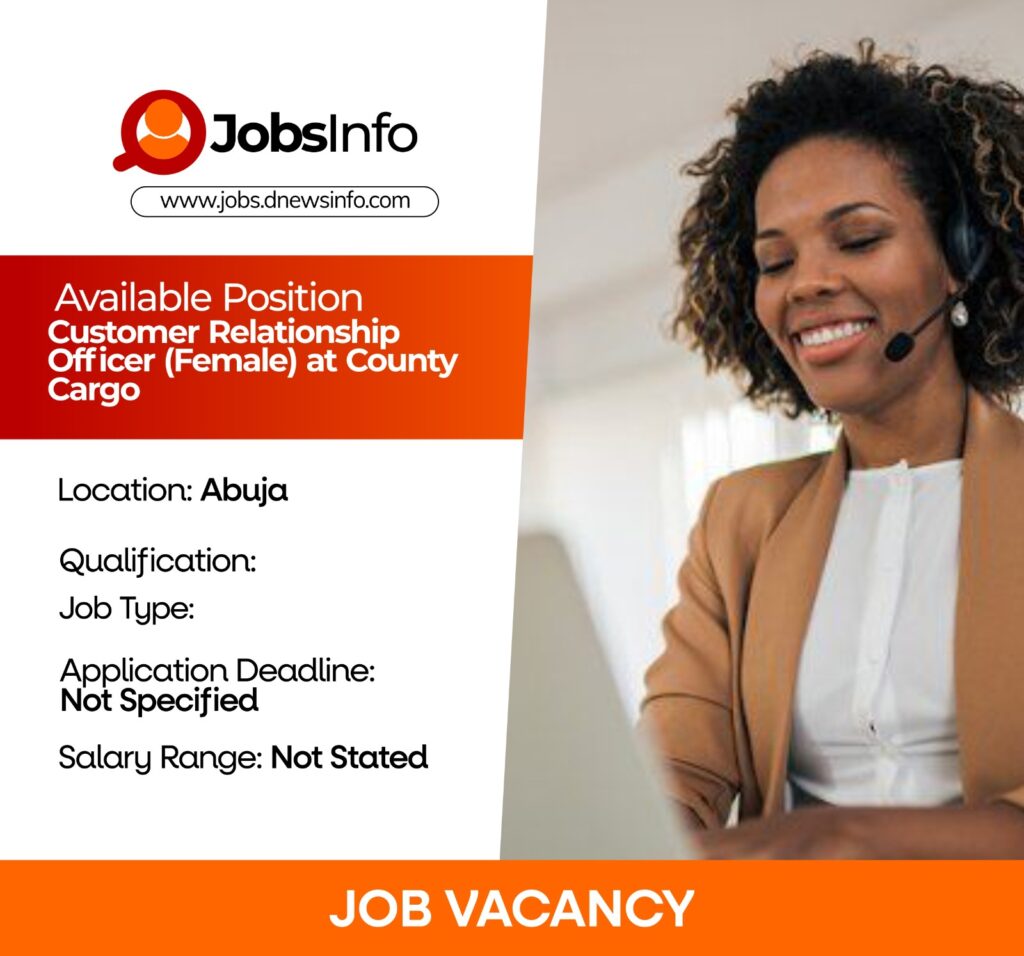 County Cargo is seeking a Customer Relationship Officer (Female) to join its growing team in Jabi, Abuja. The ideal candidate will be responsible for managing client interactions, building long-term customer relationships, and supporting the company’s marketing initiatives through digital platforms.