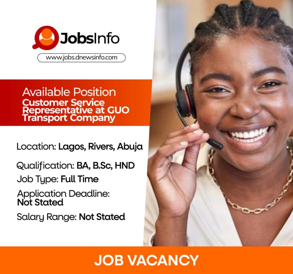 GUO Transport Company is seeking a Customer Service Representative to join its team. The successful candidate will be responsible for delivering excellent customer service, ensuring smooth parcel registration and collection, and supporting logistics operations.