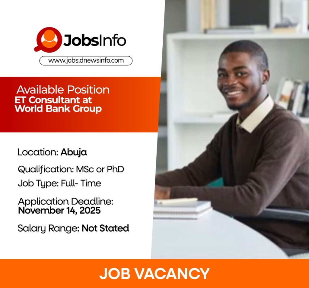The Gender Innovation Lab (GIL) of the World Bank’s Africa Gender Impact Evaluation Unit, mapped to the Africa Region Chief Economist’s Office, is recruiting an ET Consultant to join its team in Abuja, Nigeria. The successful candidate will work within the Nigeria Gender Innovation Lab (NiGIL) to lead impact evaluations, analytical research, and policy engagements that support women’s economic empowerment across the country.