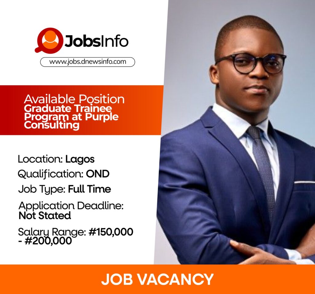 Purple Consulting is a reputable company in Lagos, Nigeria, currently inviting applications from passionate and career-driven individuals to join its Graduate Trainee Program. This program is designed for fresh graduates who are eager to build a strong career foundation, gain valuable experience, and grow into future leaders.
