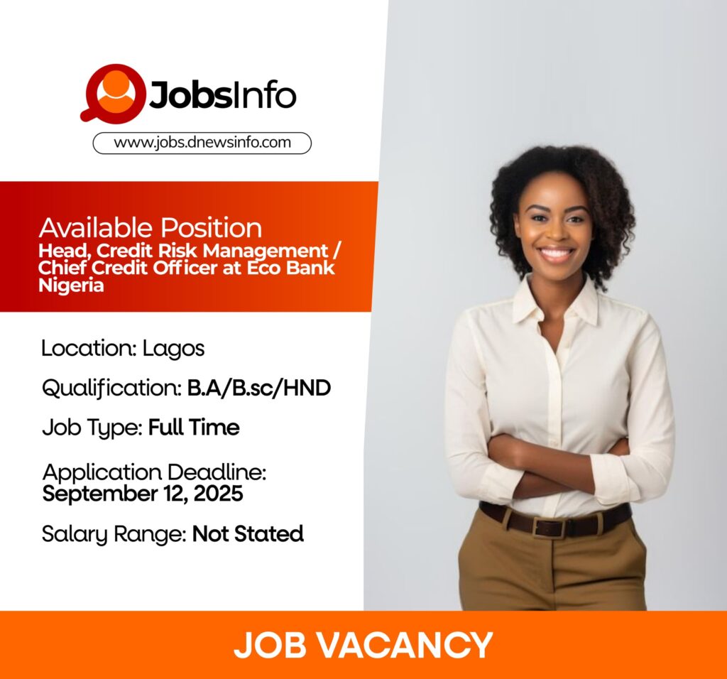- Review and approve credit requests in line with CBN guidelines and Ecobank’s credit policy.