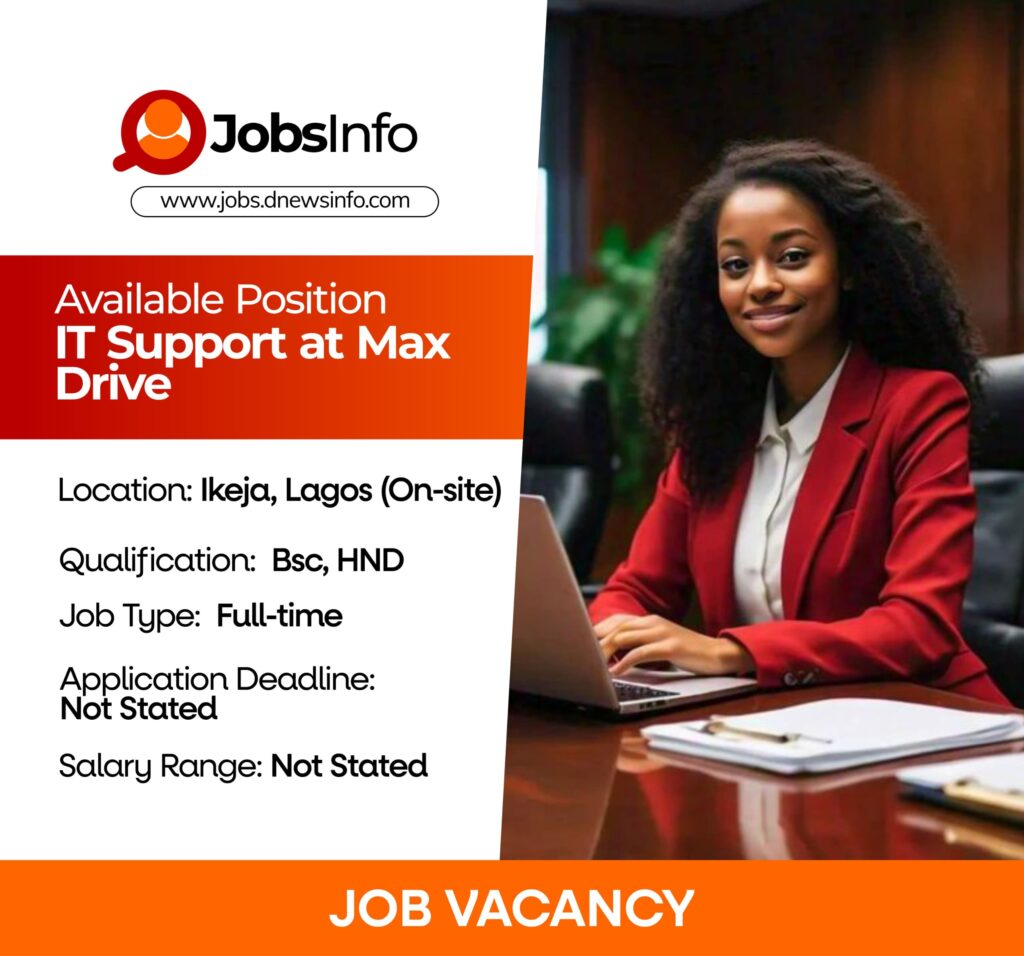 Max Drive is seeking a proactive IT Support Officer to join its team in Ikeja, Lagos. The ideal candidate will assist in maintaining IT systems, resolving hardware/software issues, and ensuring smooth technical operations across the company. This role requires someone eager to grow in a fast-paced environment while providing excellent support to both team members and systems.