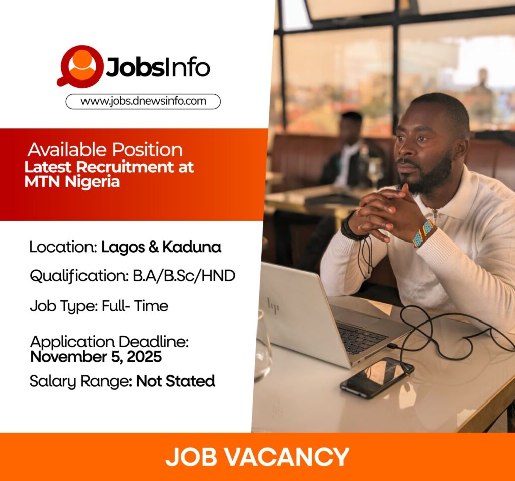 MTN Nigeria is currently recruiting for multiple positions across various departments, including Technology, Sales, Customer Service, Data Analytics, Agile Delivery, and Partnership Management. These roles provide an opportunity to work with one of Nigeria’s top employers, gain hands-on experience in telecommunications, and contribute to MTN’s mission of driving digital inclusion and innovation.