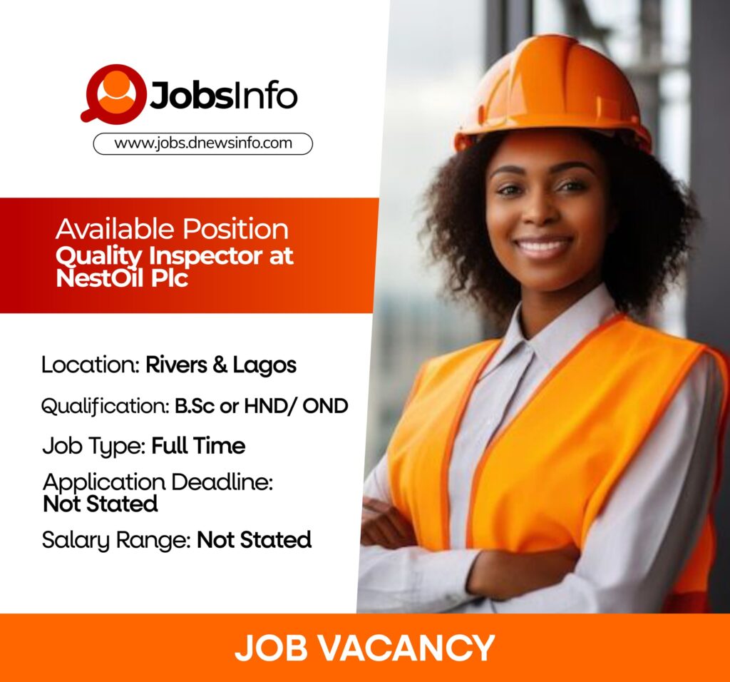 NestOil Plc is recruiting for the position of Quality Inspector (Graduate Level) to support its operational and quality assurance functions. The successful candidate will work across strategic business units, ensuring compliance with aviation and operational standards as required by regulatory bodies.