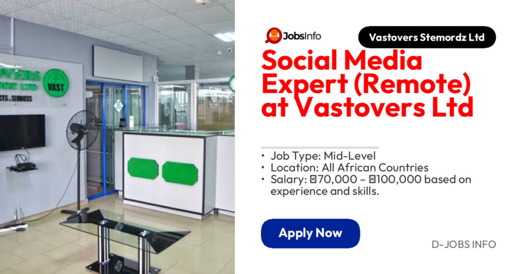 Vastovers Stemordz Ltd is seeking a Social Media Expert to join our team remotely. The ideal candidate will be responsible for managing our social media presence, driving brand awareness, and executing effective social media strategies across multiple platforms.