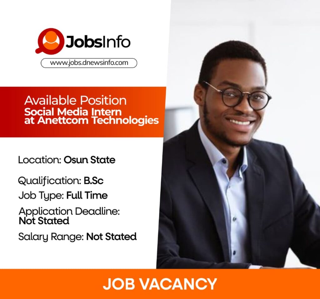 We are seeking a Social Media Intern to join our team in Osogbo. This role is ideal for a creative and passionate individual who is eager to build a career in social media management and digital engagement.