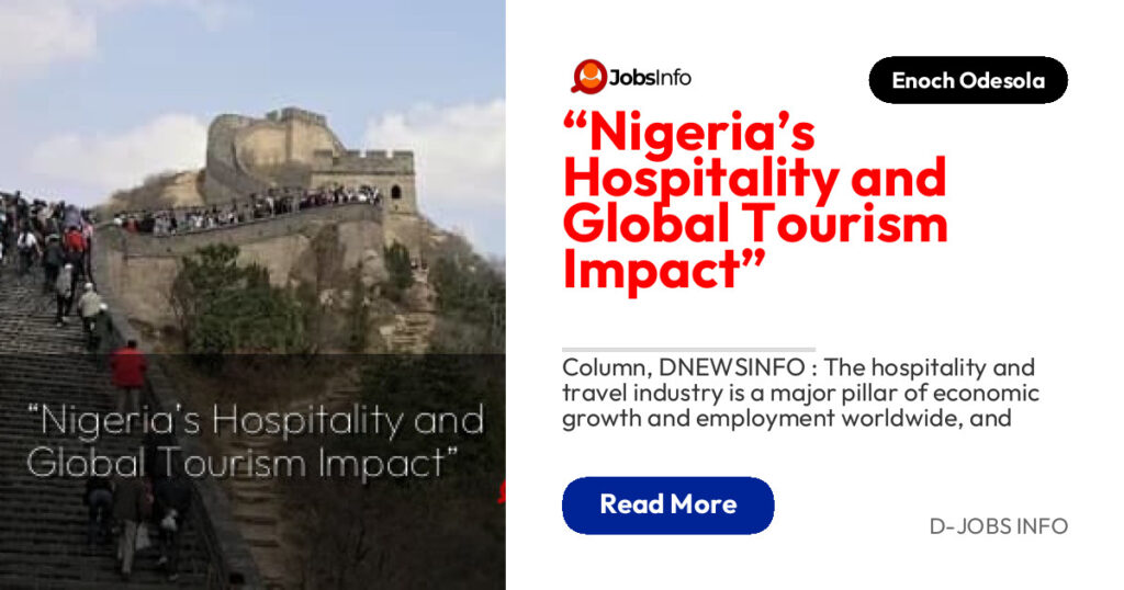 Column, DNEWSINFO : The hospitality and travel industry is a major pillar of economic growth and employment worldwide, and Nigeria is no exception