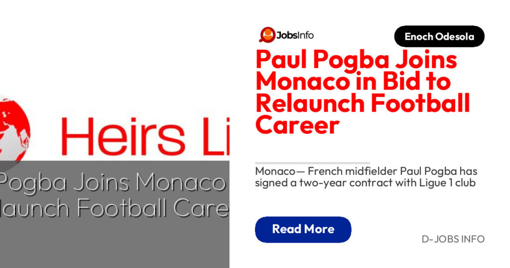 Monaco— French midfielder Paul Pogba has signed a two-year contract with Ligue 1 club AS Monaco, marking his return to professional football after nearly two years away from the game.
