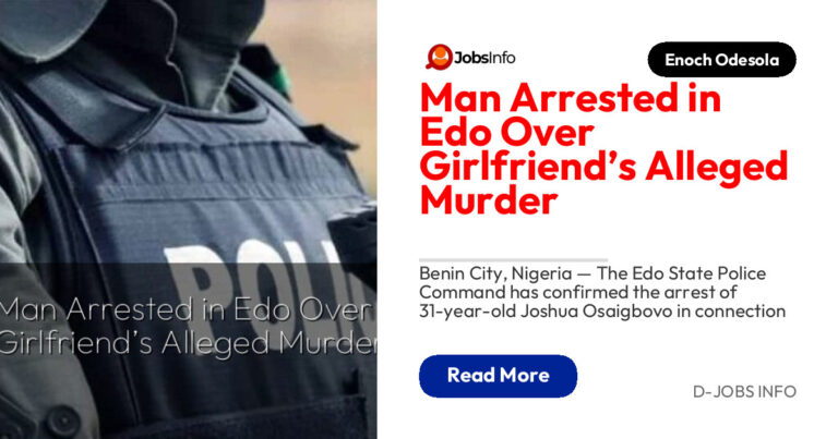 Benin City, Nigeria — The Edo State Police Command has confirmed the arrest of 31-year-old Joshua Osaigbovo in connection with the alleged murder of 21-year-old Osato Festus Edogiaweria. According to a statement issued by the Command’s Public Relations Officer, CSP Moses Yamu, the incident was first reported on April 25, 2025, by the victim’s mother, […]